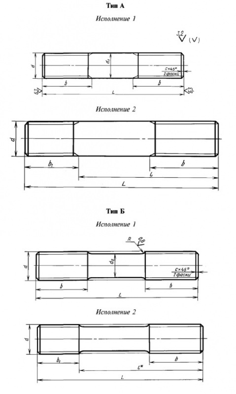 Шпильки изготавливаются следующих типов: